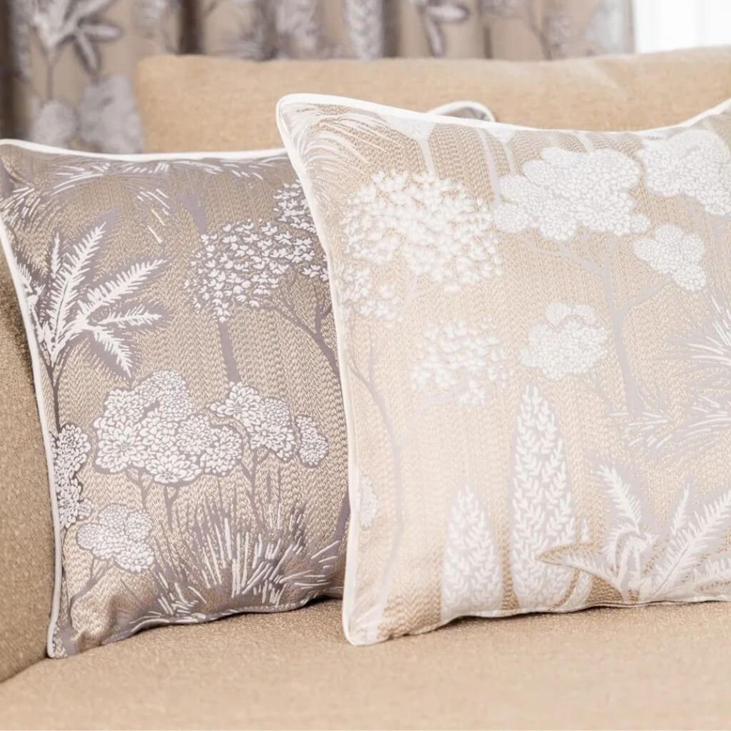 Dekoračná látka Artemis s vzorom bielych kvetov na béžovom podklade je ideálnou voľbou pre každého, kto miluje nadčasový dizajn a kvalitu.