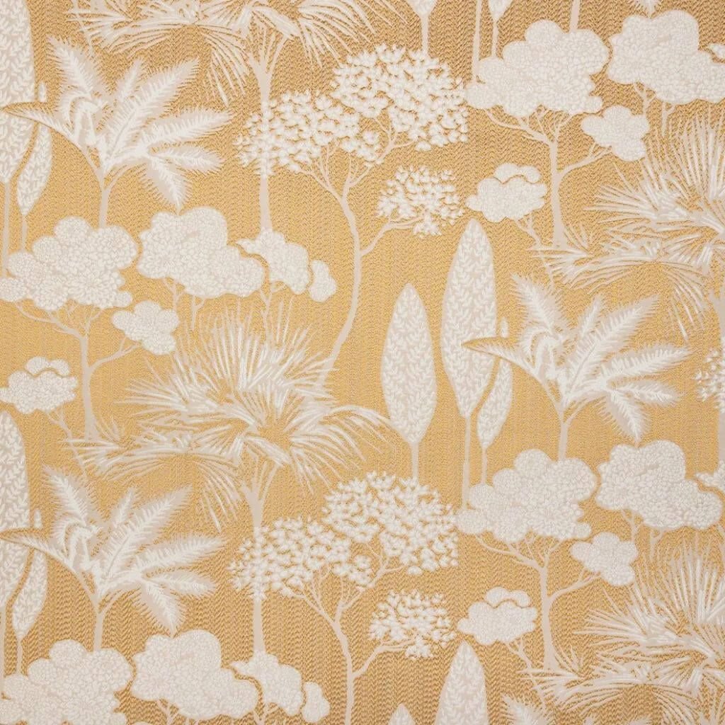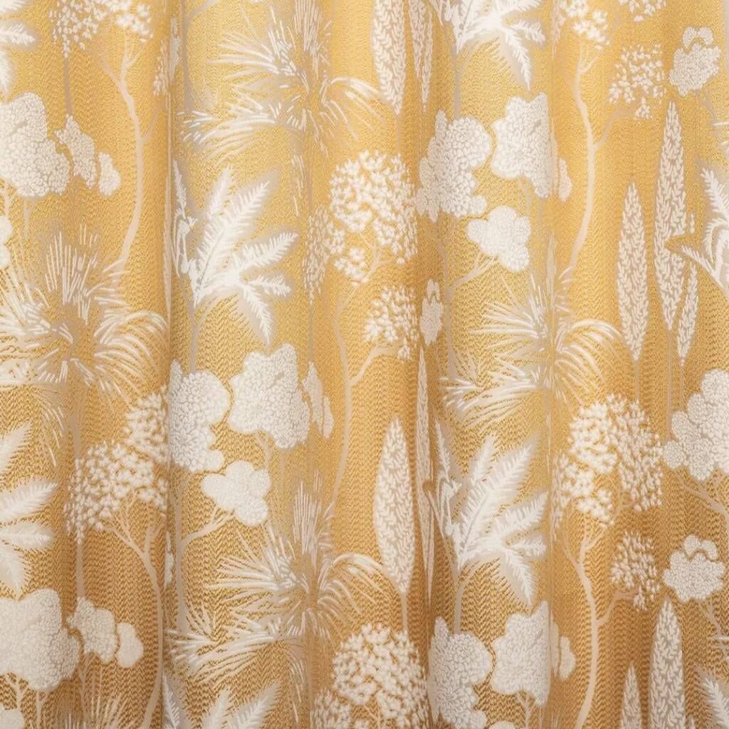 Dekoračná látka Artemis s vzorom bielych kvetov na žltom podklade je ideálnou voľbou pre každého, kto miluje nadčasový dizajn a kvalitu.