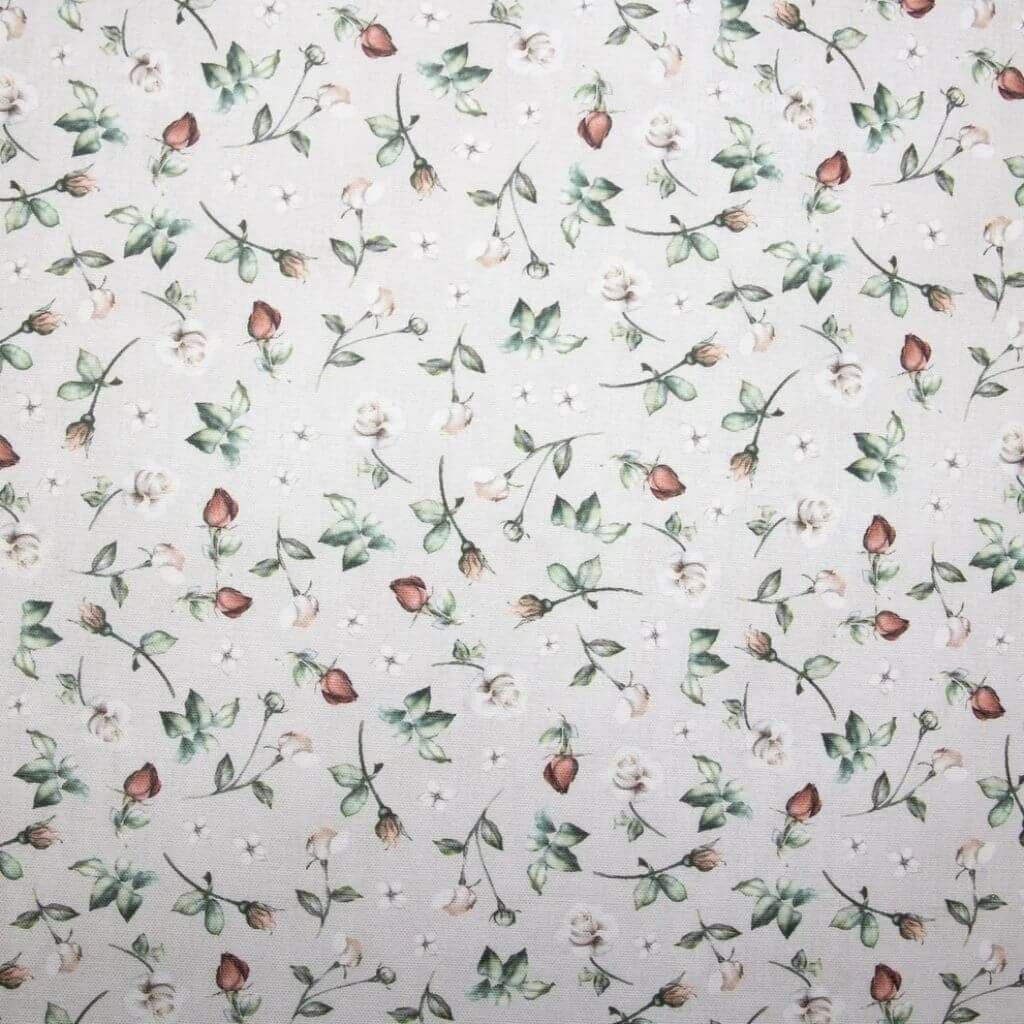 Dekoračná látka s romantickým kvetinovým vzorom prinesie do vášho interiéru jemnosť, eleganciu a nádych prírody. Svetlý béžový podklad v kombinácii s drobnými červenými kvetmi a zelených tónoch pôsobí harmonicky a nadčasovo, vďaka čomu sa látka ľahko kombinuje s rôznymi farbami a štýlmi zariadenia. Vzor s púčikmi ruží a zelených listov dodáva priestoru svieži a útulný charakter.