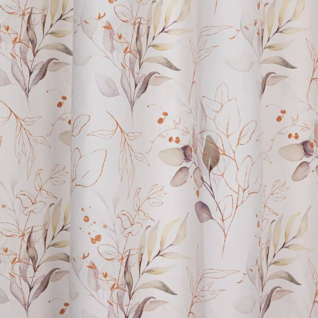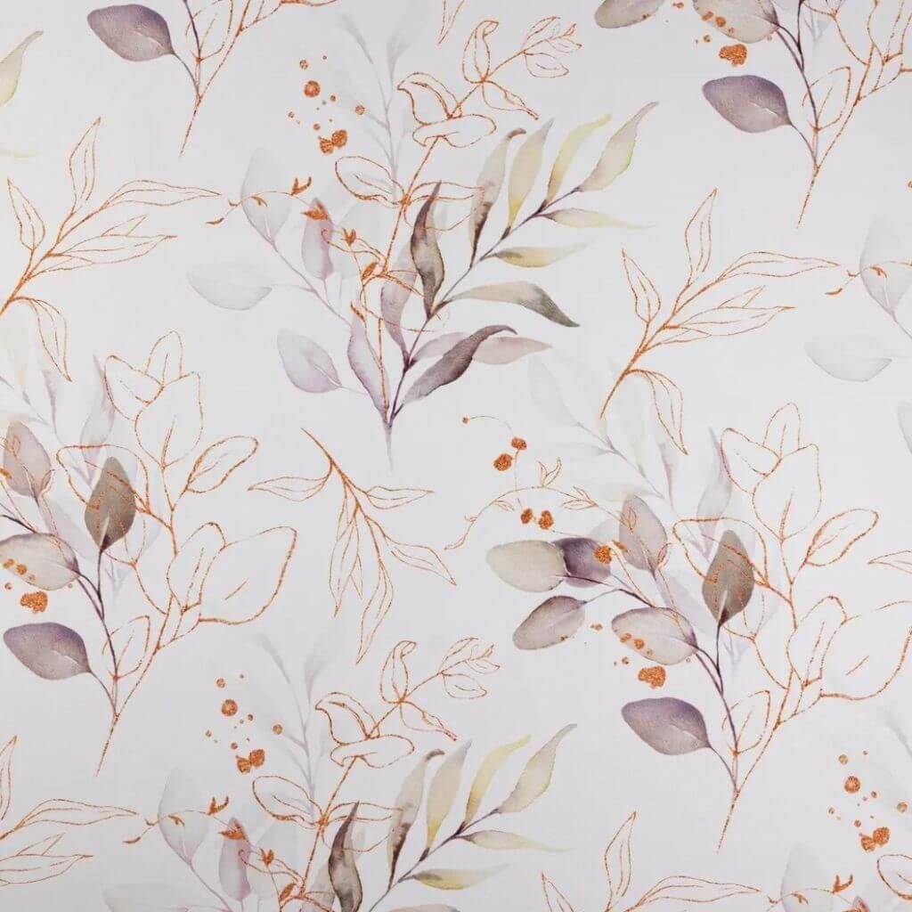Elegantná závesová látka na bielom podklade so hnedými listami prinesie do interiéru svieži nádych prírody a pocit harmónie.
