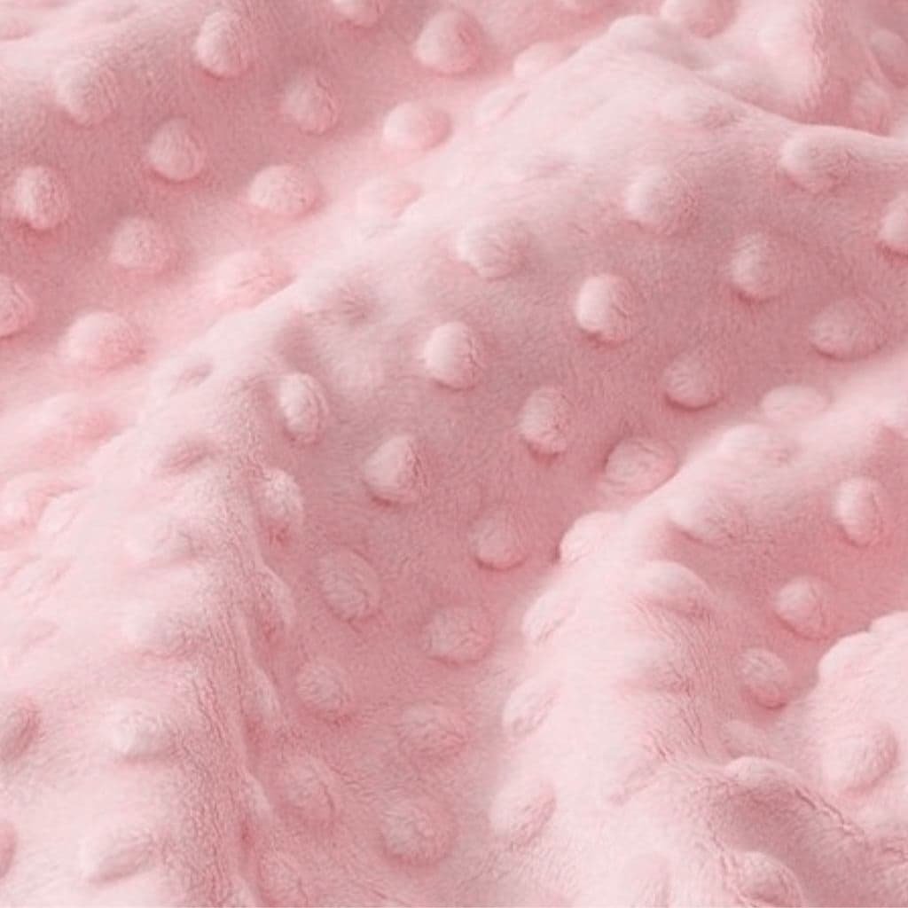 Jednofarebné minky premium ružová 380 g/m2 je veľmi príjemný a hebký materiál, mierne elastický s drobnými guličkami.