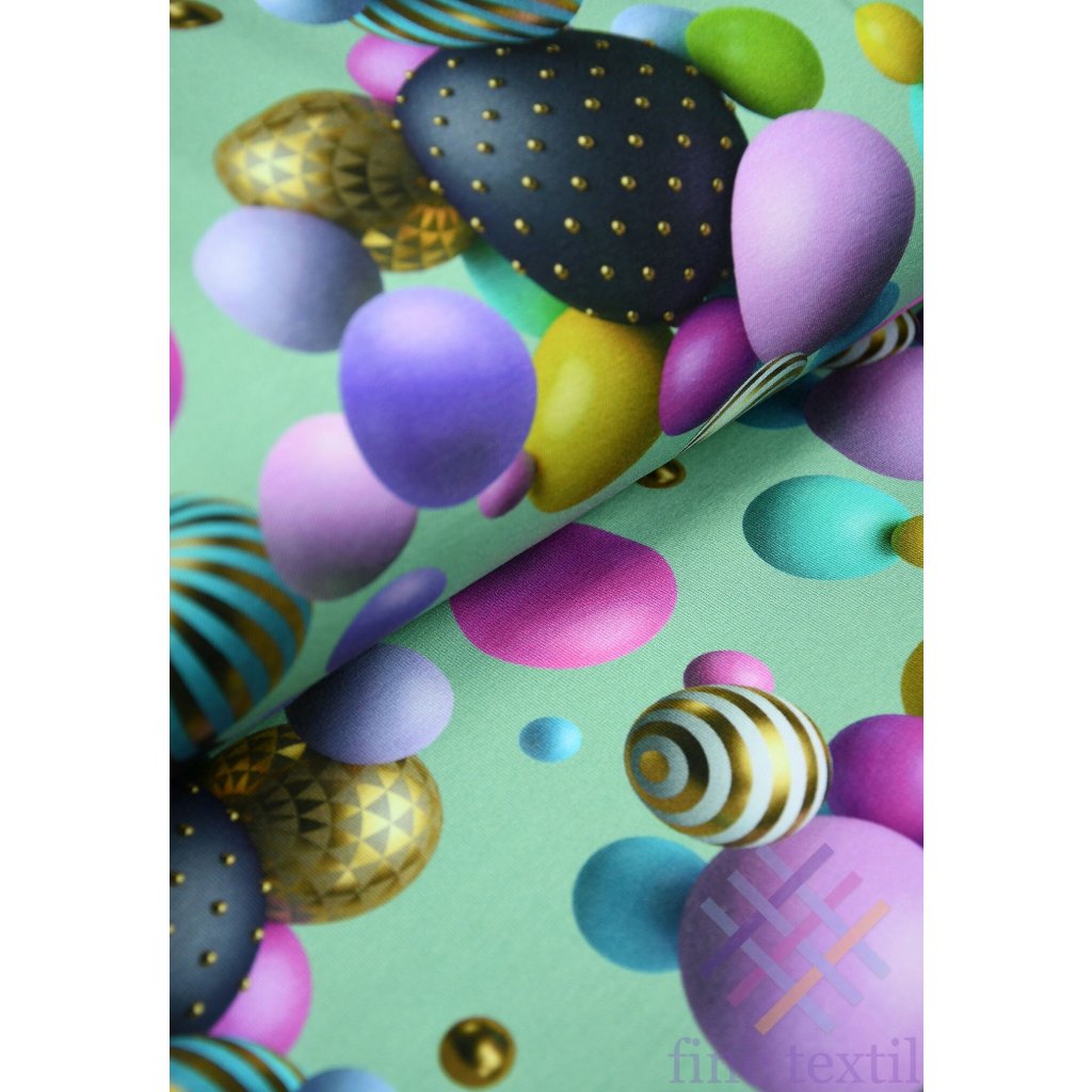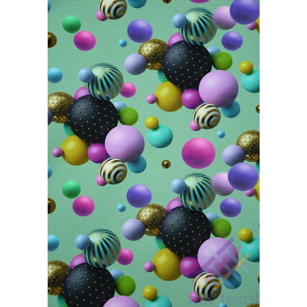 Vzorovaná teplákovina na svetlo zelenom podklade s peknými farebnými guľami rôznej veľkosti je ideálna na šitie detského oblečenia, trička, mikiny, teplákov, bundy ale aj na jesenné čiapky a nákrčníky. Teplákovina je látka so širokým využitím. Svojím zložením s 95% podielom bavlny a 5% elastanu zaručí, že výsledné oblečenie bude veľmi pohodlné.